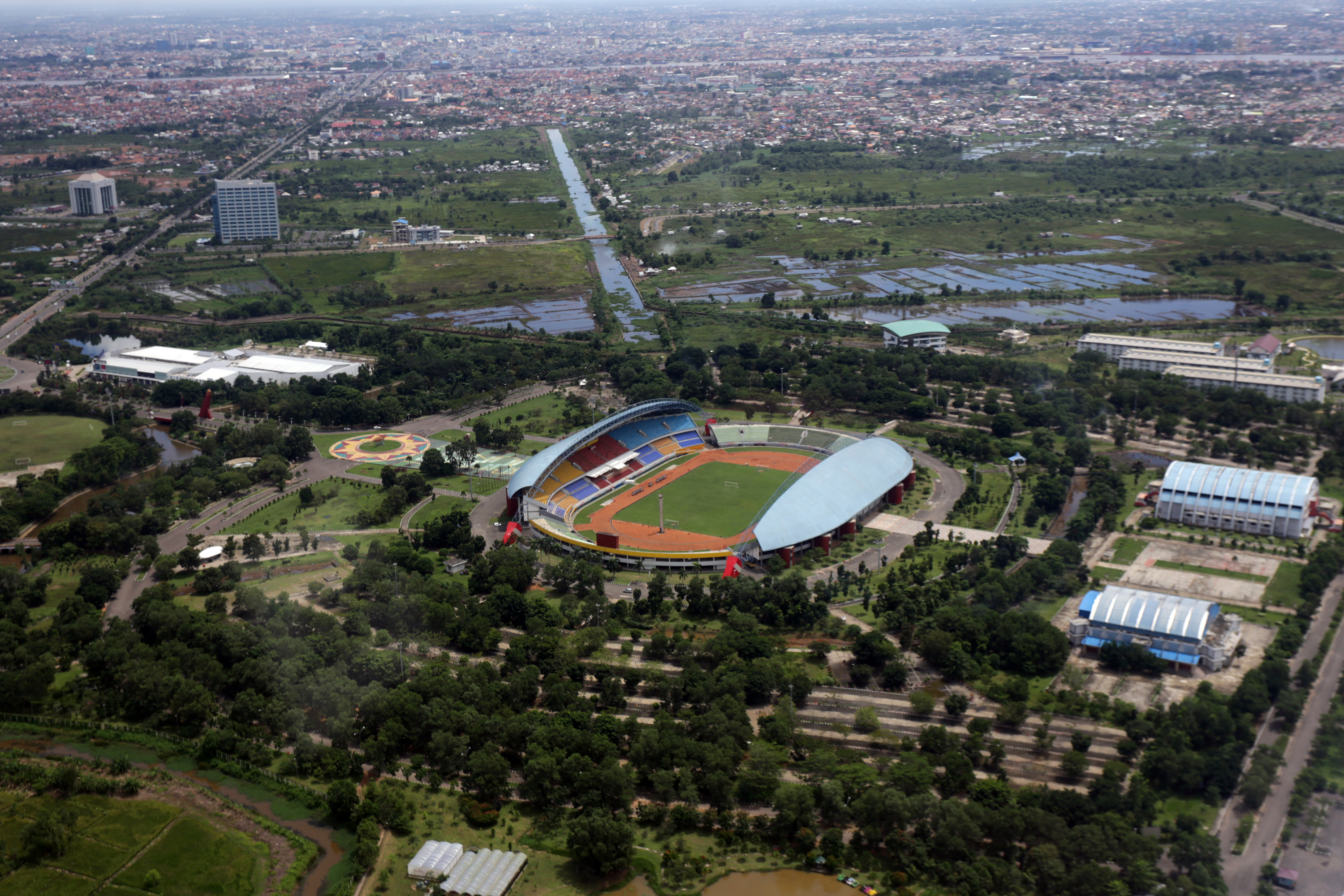 Arsip Foto udara kawasan olahraga Jakabaring Sport City JSC Palembang yang merupakan salah satu tuan rumah pelaksana Asian Games 2018 Palembang Sumatera Selatan Senin 22102018. Kesuksesan pelaksanaan meningkatnya prestasi atlet. PALEMBANG Jakabaring Sport City Palembangs Sport City 3.